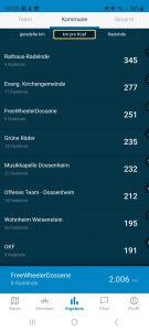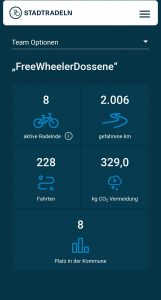 Zudem sind wir pro Kopf mit den FreeWheelerDossene mit 251 km auf den 3. Rang vorgeradelt.